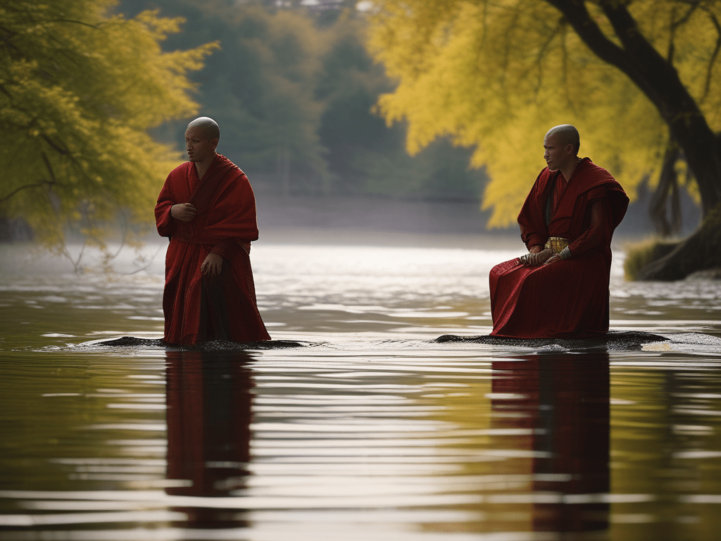 Nel suo cammino con un novizio si ritrova di nuovo allo stesso fiume