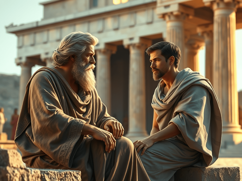 -Detto così, la via dei ricercatore mi sembra un cammino entusiasmante. È quella che anch’io voglio seguire, Socrate. Voglio diventare filosofo, anche se so che dovrò accettare la mia ignoranza e non potrò mai svelare gli ultimi misteri del mondo.