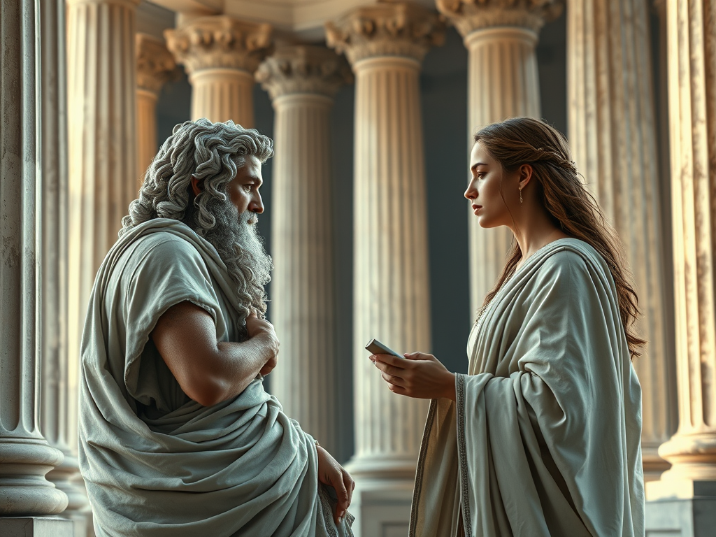 -Maestro: Era uomo di verità. E la verità, quando è vissuta, diventa bellezza. Socrate era bello perché era intero, era sé stesso: non cercava di sembrare altro, non nascondeva le sue imperfezioni. La bellezza di Socrate non risiedeva nel corpo, ma nel logos, nella capacità di generare bellezza negli altri attraverso la parola e la ricerca del vero. Lui ci ha insegnato che il bello non coincide con la simmetria delle forme, ma con la verità del proprio essere.