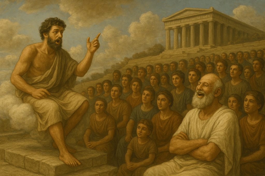 -Filostrato: Già accade. Cleone lo detesta. Molti intellettuali si sono risentiti. I politici lo evitano. Ma chissà: forse far ridere è un modo per dire la verità senza rischiare le catene.