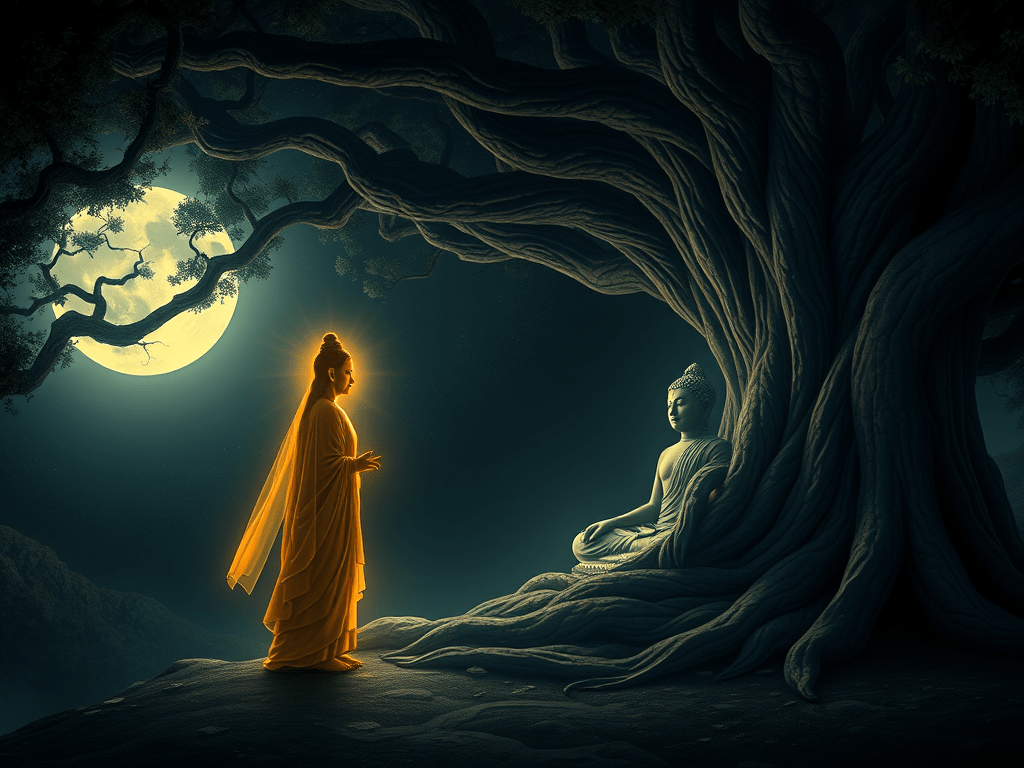 Il Buddha sedeva sotto il banyan, in silenzio.